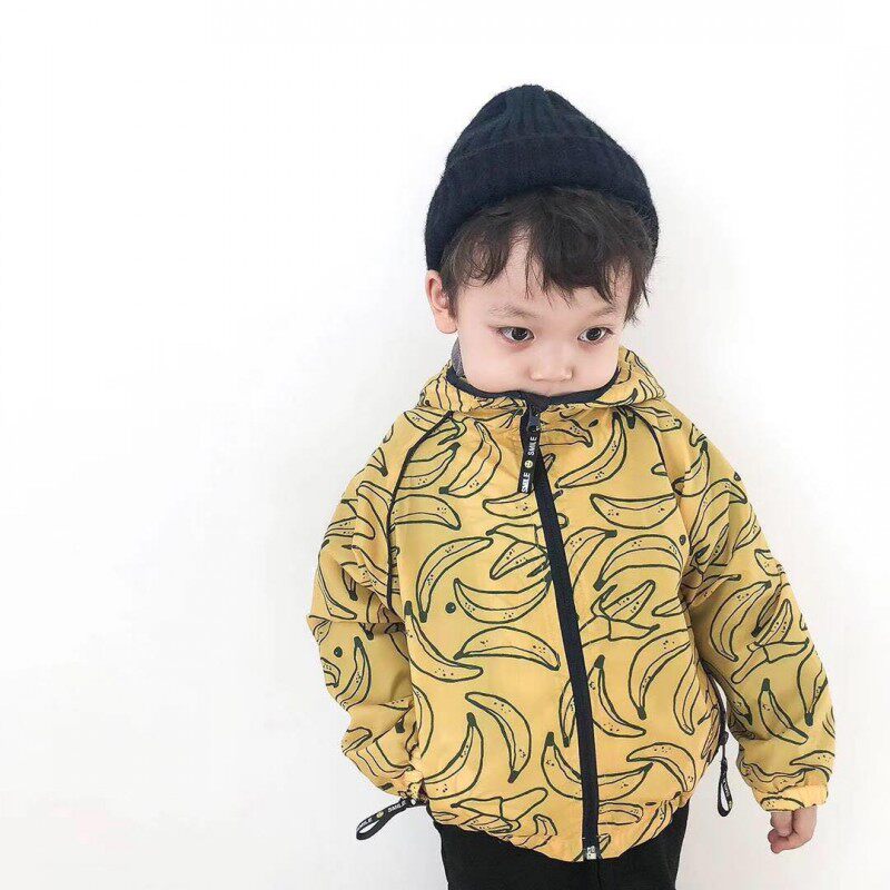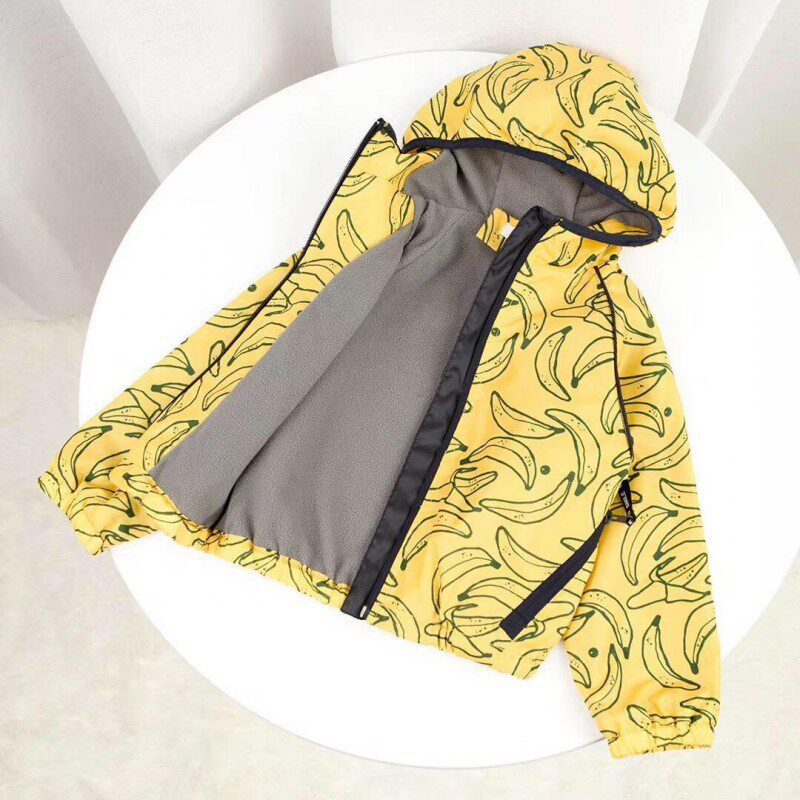 (Qiaojia) New autumn and winter boys and girls outdoor windproof fleece banana print windbreaker children's warm jacket