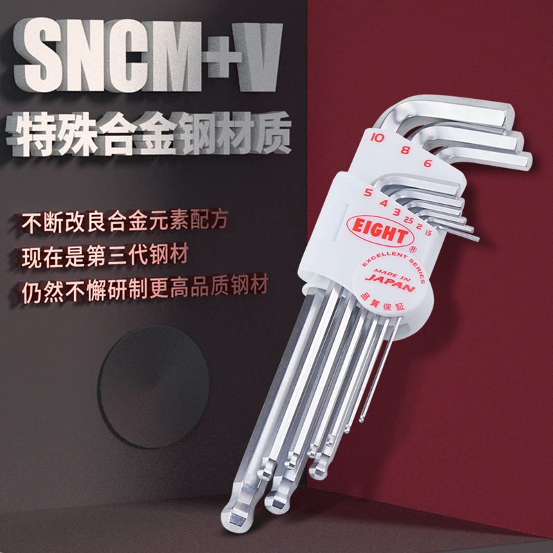 EIGHT Baileys Japan imported extended metric inch ball head Allen wrench set hexagonal key TMS 016