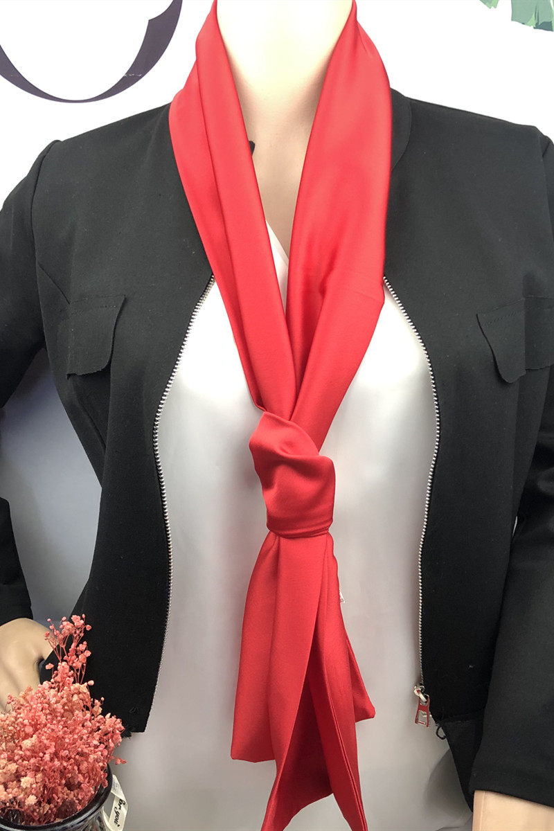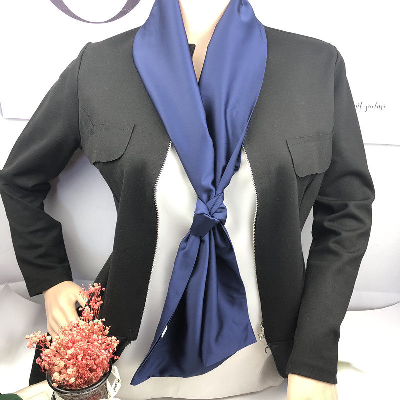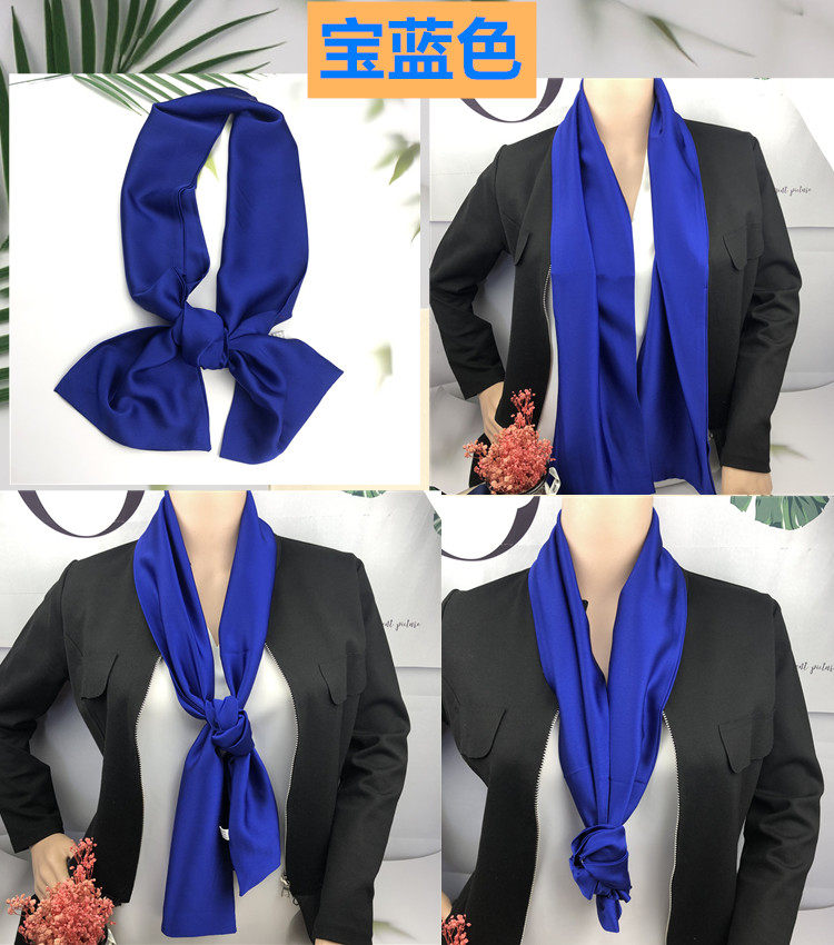 Spring and autumn pure color silk scarf ladies long square scarf Korean scarf narrow scarf winter tie tooling can print logo