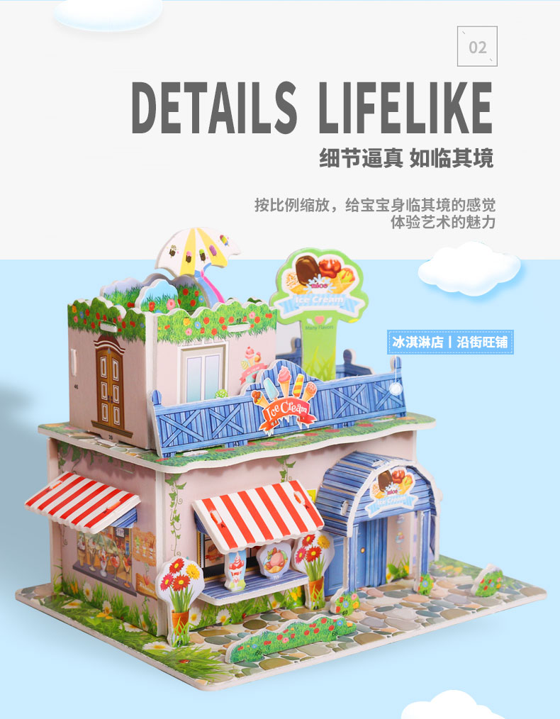 Ice cream shop flower shop Christmas cottage hotel old train dinosaur paradise dream castle pink castle seascape villa fighter ice garden pink garden home station