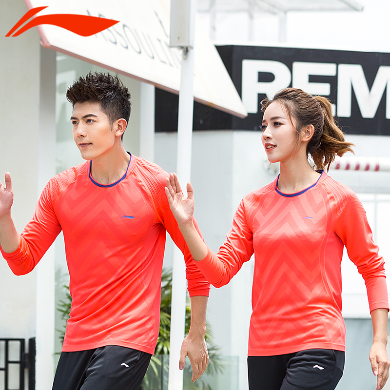 2018 Li Ning badminton suit clothes men and women with long sleeve blouses, autumn and winter round collar training competition uniforms large size code AT