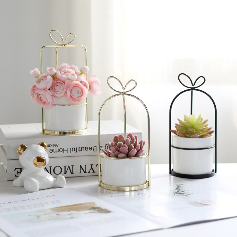 Fengyin Nordic creative ceramic iron succulent flower potted plant decoration gift soft decoration model room companion for Christmas