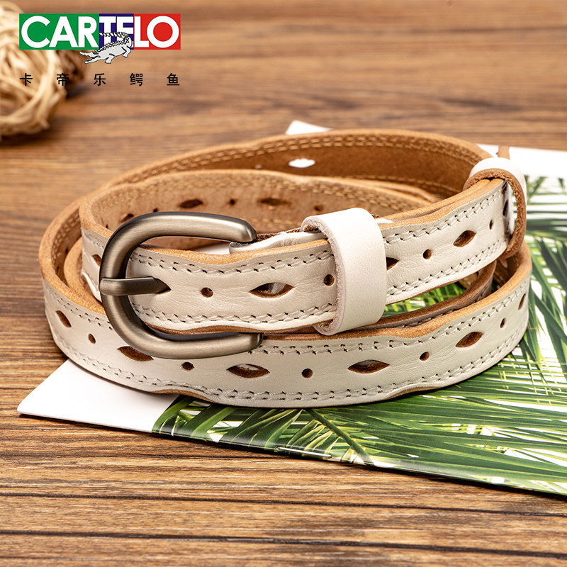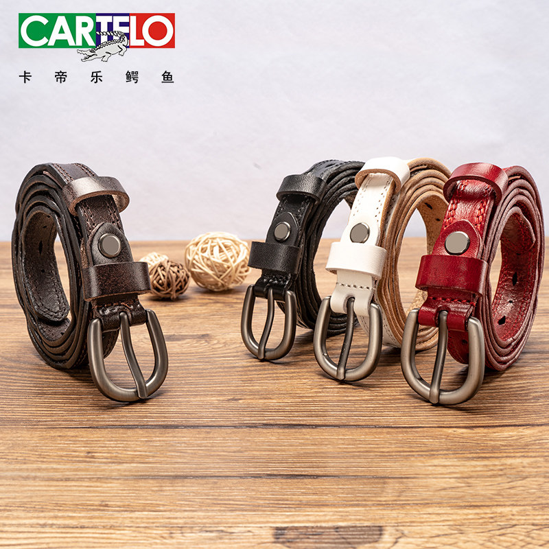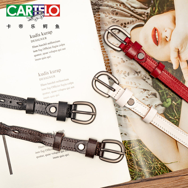 Kadile crocodile belt female leather simple wild decoration Korean version thin belt head layer pure cowhide student belt