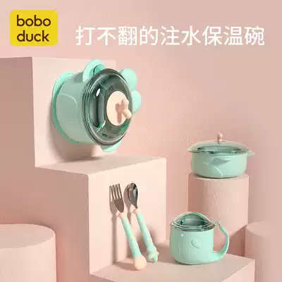 Children's tableware water filling warm bowl infant baby Bowl Spoon set cute cartoon non-staple food bowl suction bowl suction Bowl