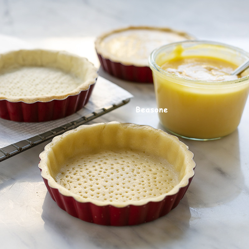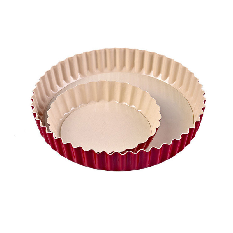 China red double-sided non-stained coating chrysanthemum pie tray pizas plate live bottom heavy stone
