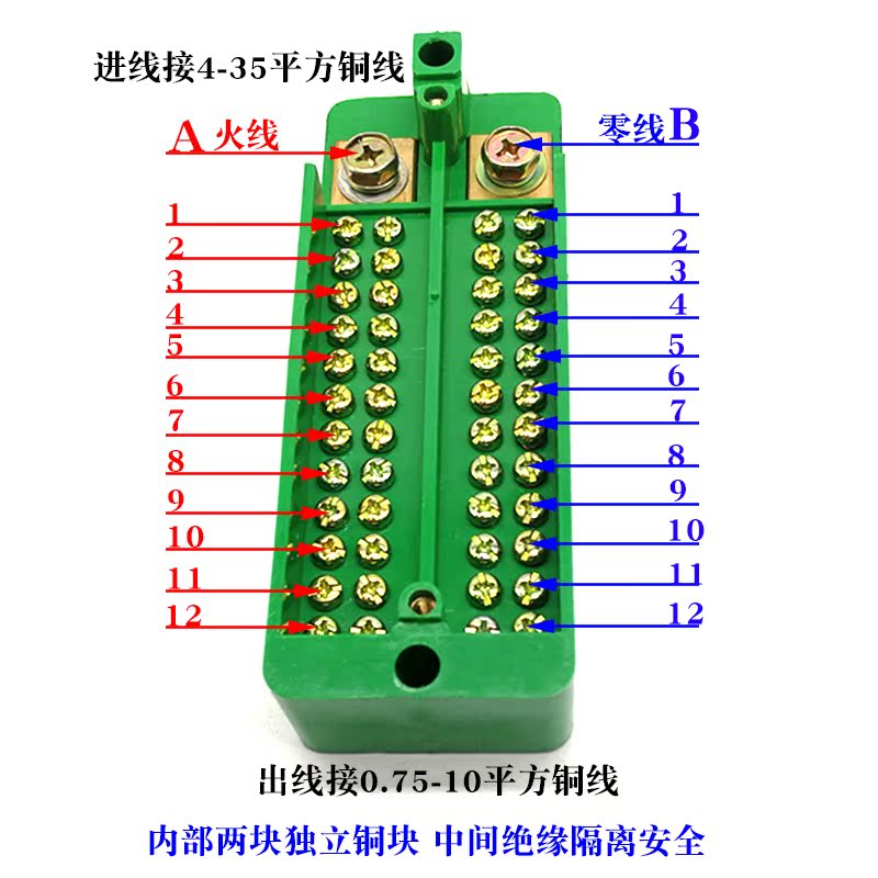HS6 straight into single-phase twelve-meter outdoor junction box 2 into 12 out of large current splitting wire box terminals and connected