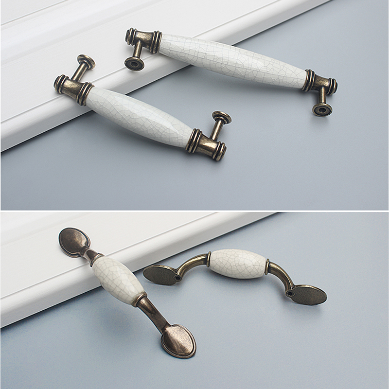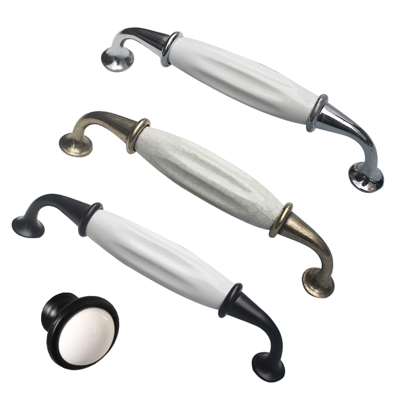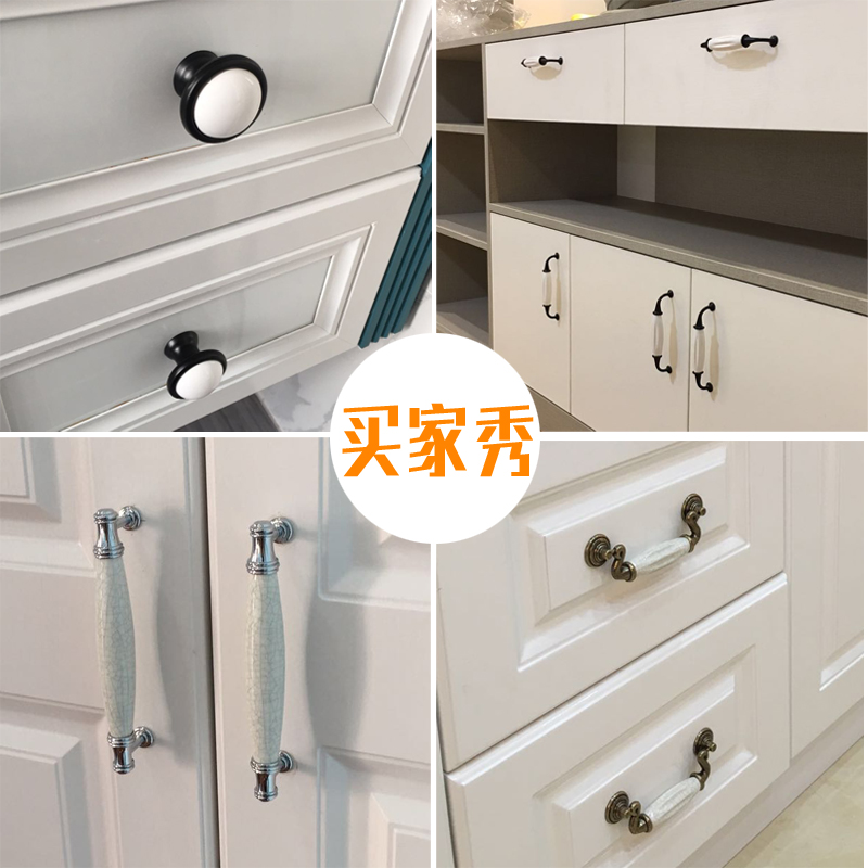 Ceramic Handle Eu Style Fields Garden Matt Black And White Wardrobe Whole Cabinet Modern Simple Drawers Cracks single-hole ceramic door handles