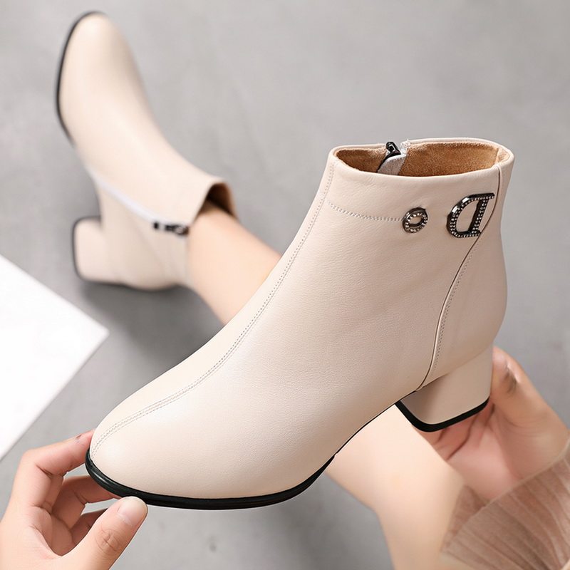 2022 autumn boots leather boots plus velvet Martin boots female winter warm and large code female boots 40 - 43