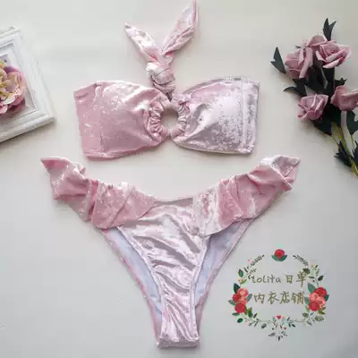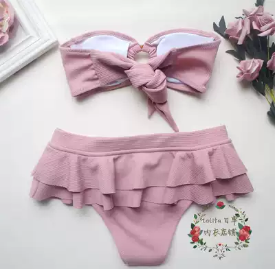 Barbie pink bikini three-point sexy ruffle bikini triangle hot spring resort swimsuit women