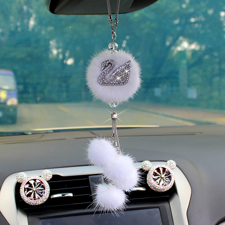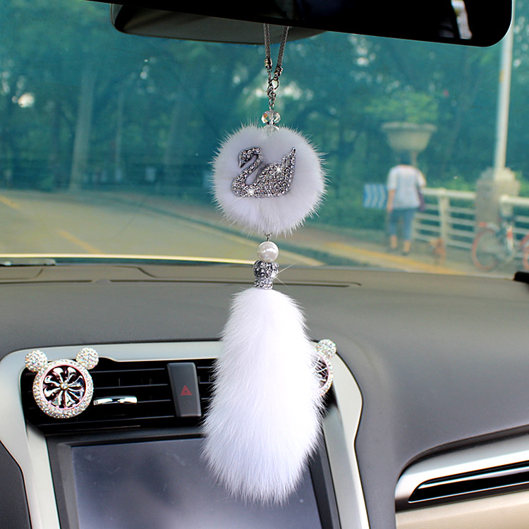 Swan car pendant car pendant high-end ladies fox fur Korean cute car pendant car pendant