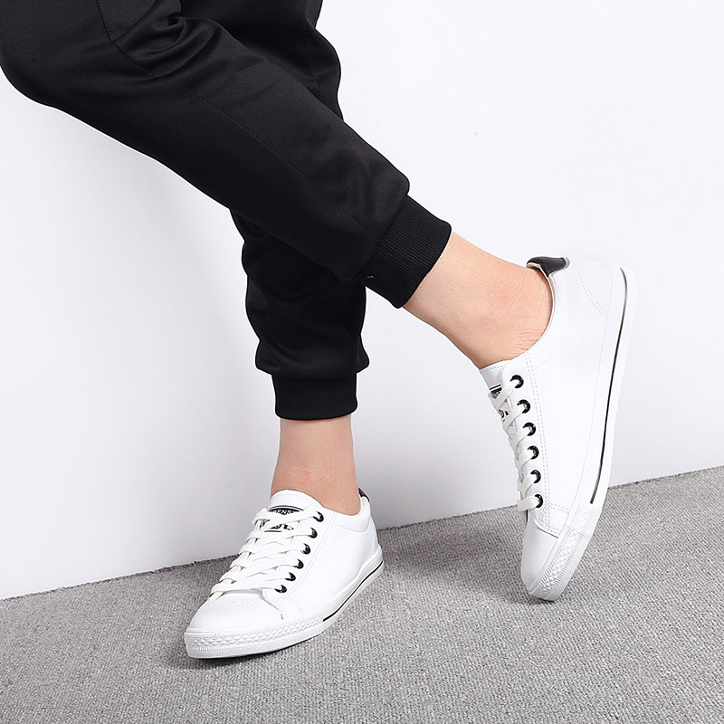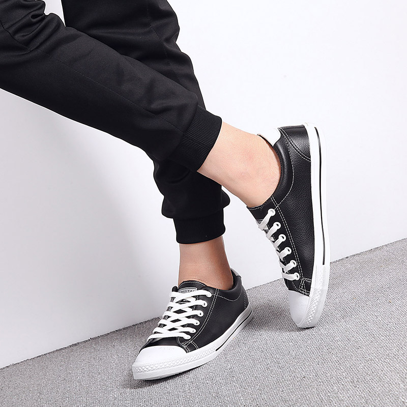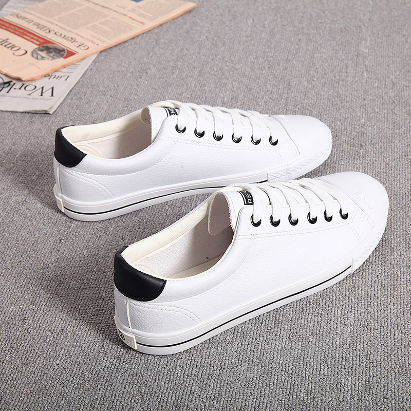 Renben 2020 new Korean version men's leather canvas shoes low-top skateboard shoes student white shoes men's shoes youth black