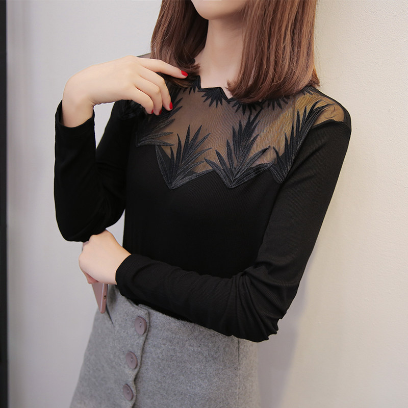 Autumn and winter 2018 new velvet thickened lace base shirt women's long-sleeved fashion versatile small shirt sexy top dress