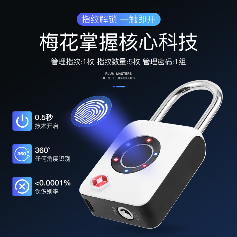 Plum lock intelligent electronic fingerprint padlock customs password lock travel luggage gym cabinet student small key lock