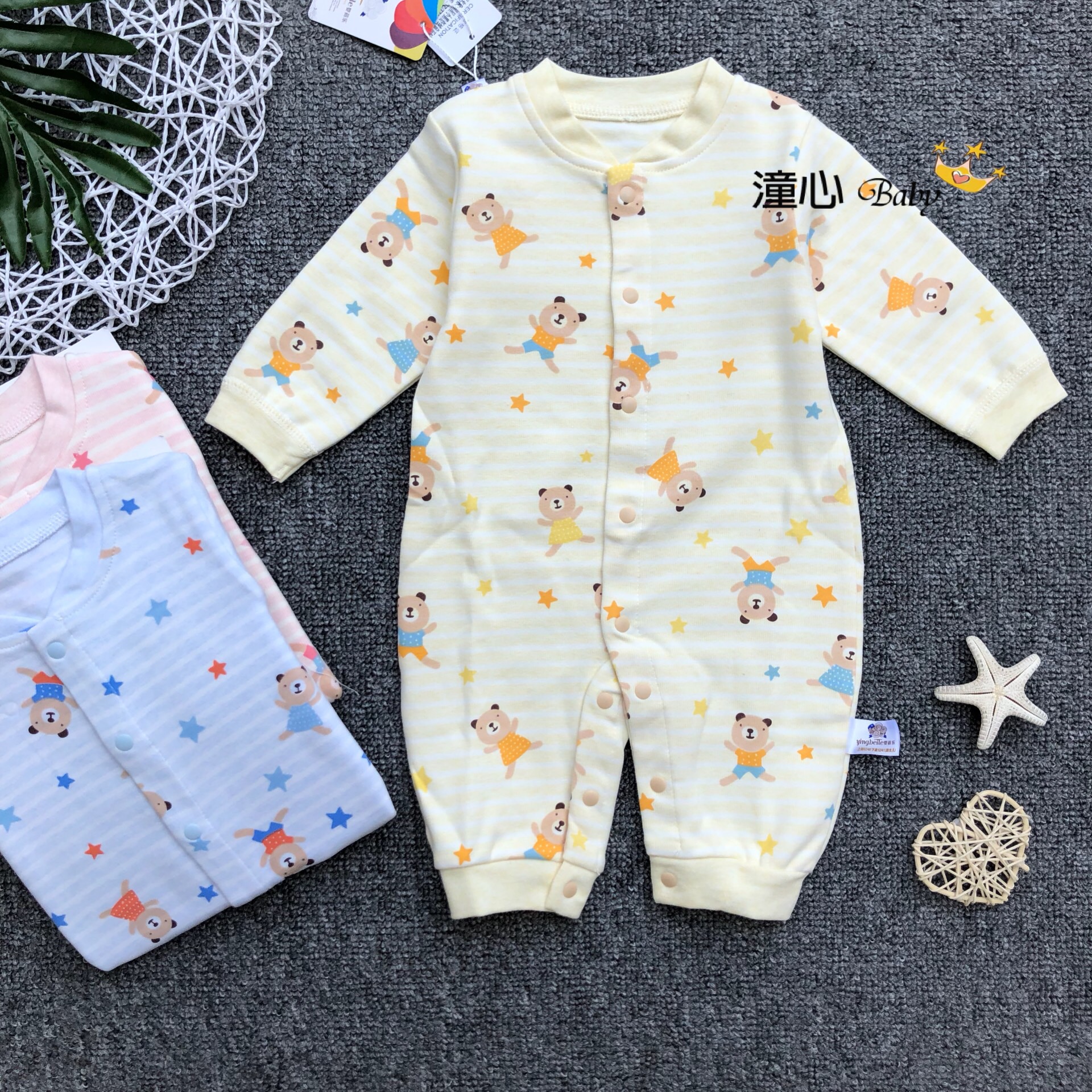 Baby Belle new baby spring, autumn and winter models velvet romper baby newborn stretch cotton front open jumpsuit 0-1