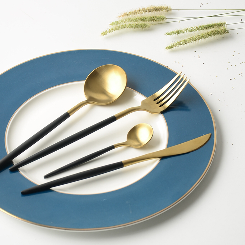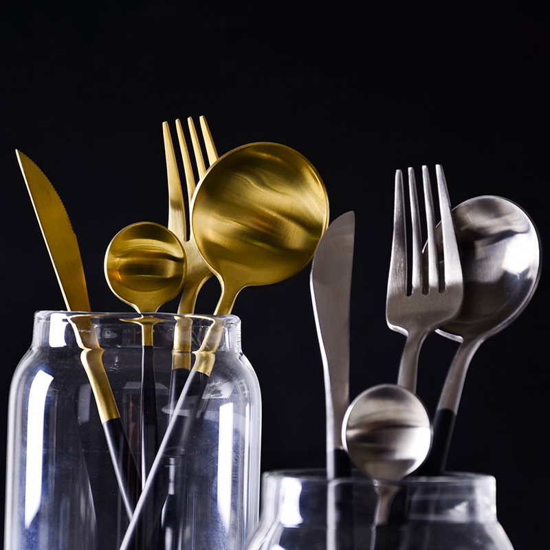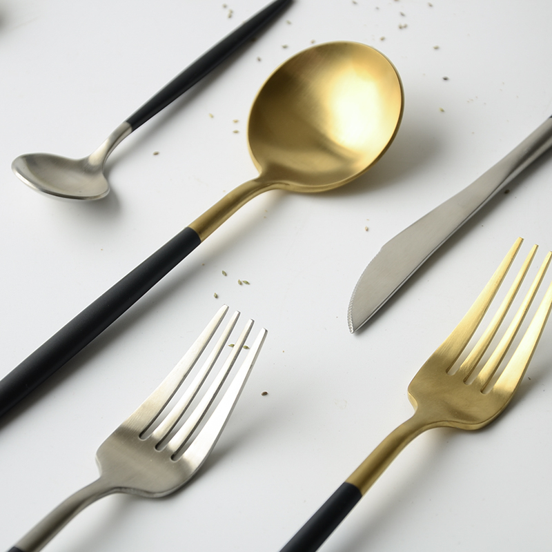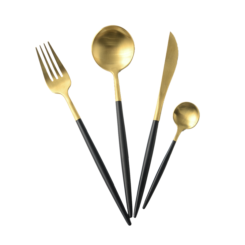 Black Gold Main Knife Black Gold Main Fork Black Gold Main Spoon Black Gold Dessert Spoon Black Silver Main Knife Black Silver Main Fork Black Silver Main Spoon Black Silver Dessert Spoon Black Gold 4 Piece Set Black Silver 4 Piece Set