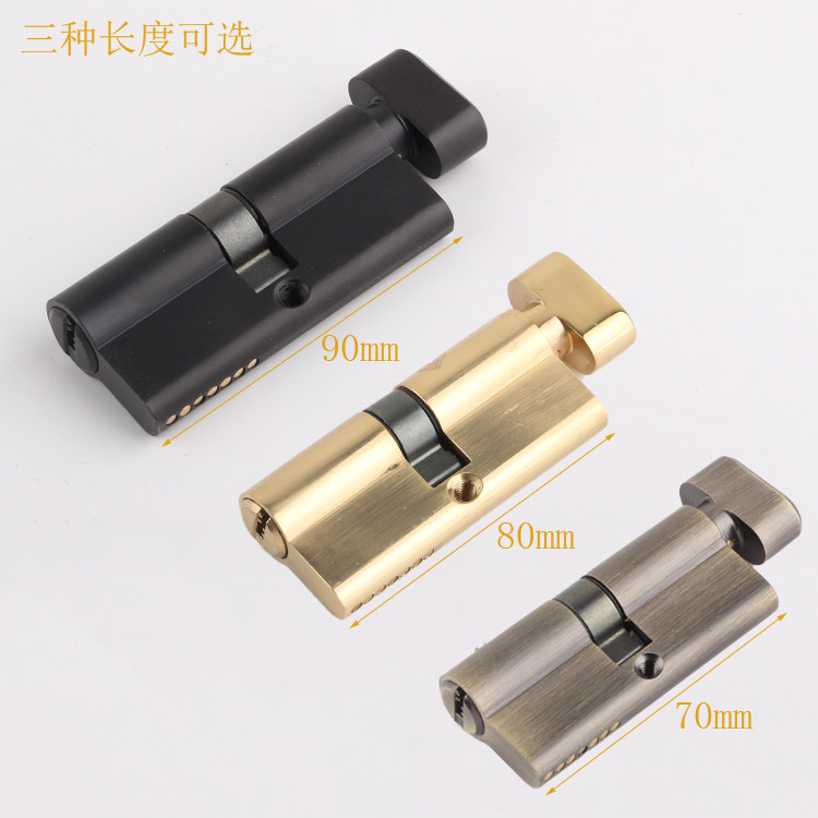 Golden pure copper lock core indoor door full copper indoor room door lock black lengthened lock core key lock large 70 wolf tooth lock core