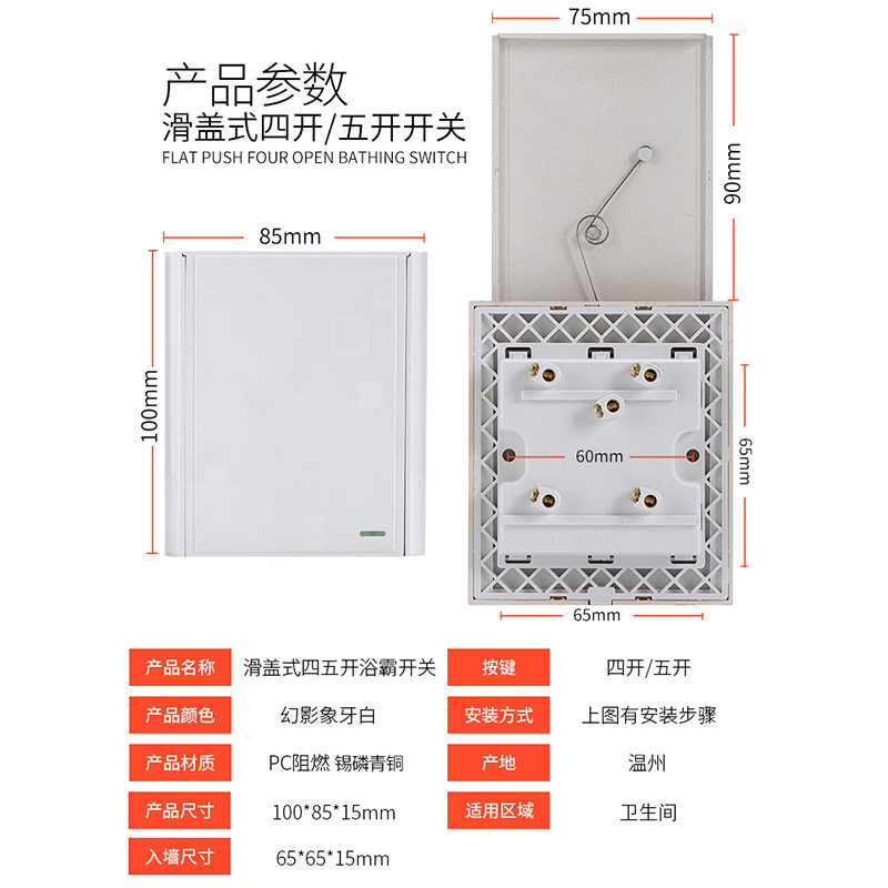 Dark Mount Five All-in-one Bath Bully Switch Flat Pushback Waterproof Splash shower Makeup Room Bathroom Four Open Five Open Single Control Panel