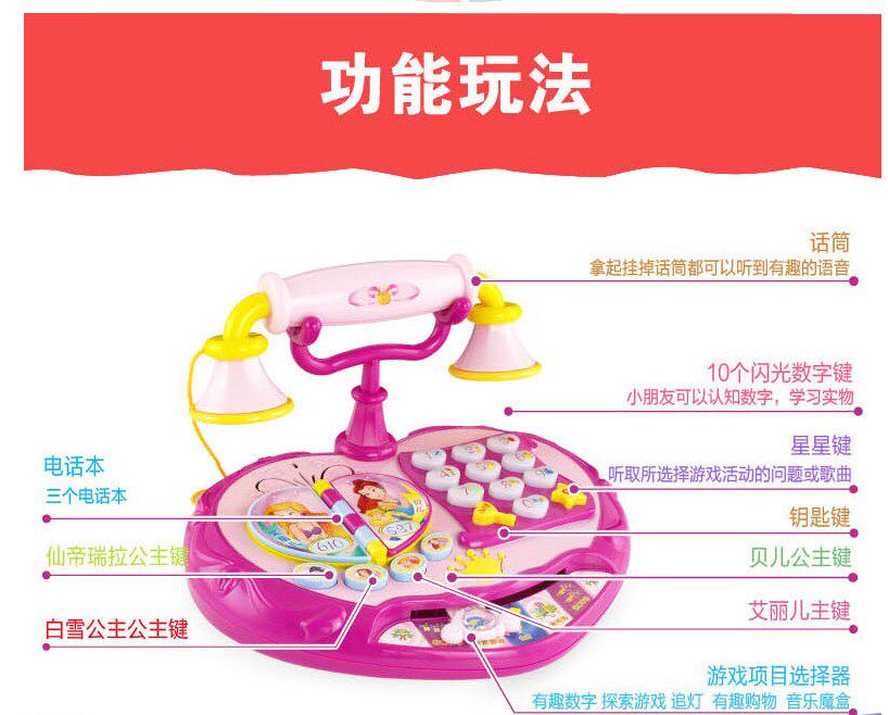 Baoli 702 Princess Phone Multifunctional Electric Lighting Music Children's Puzzle Early Education Talking Phone