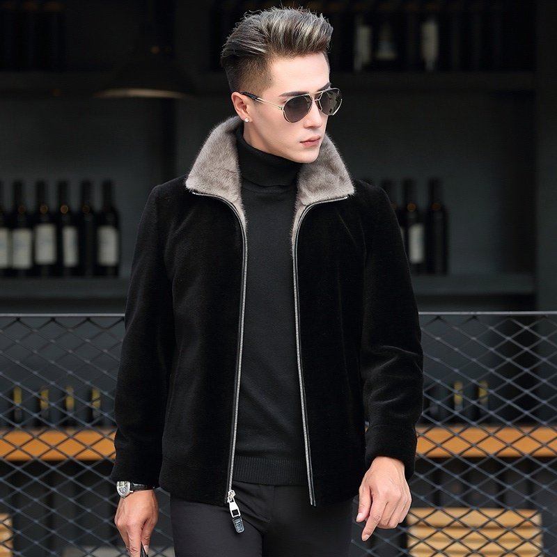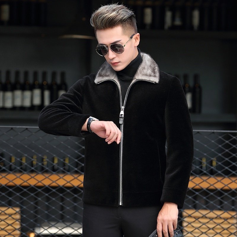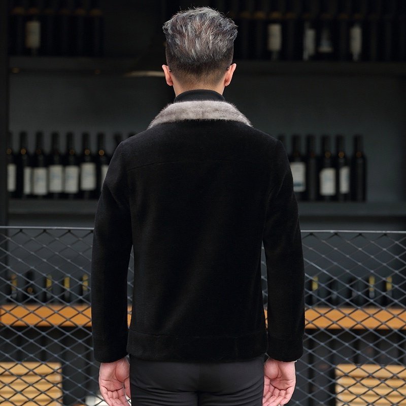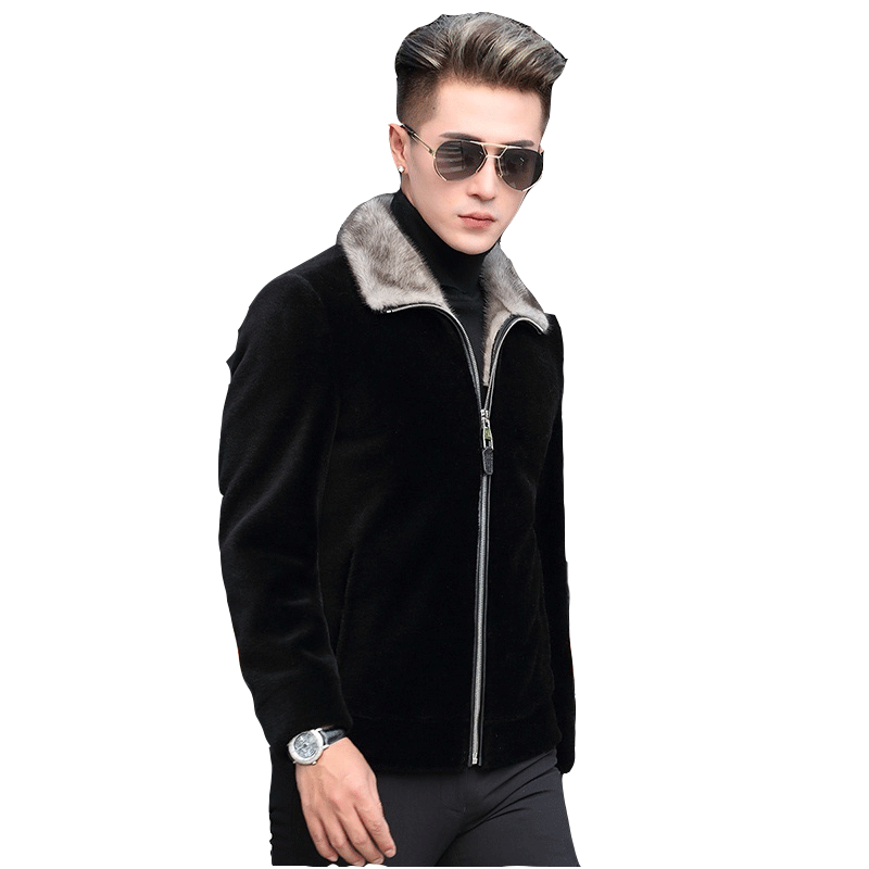 Dekase sheep shears fleece leather jacket male slim mink fur collar fur integrated plus plush thick leather leather jacket male