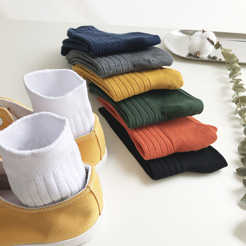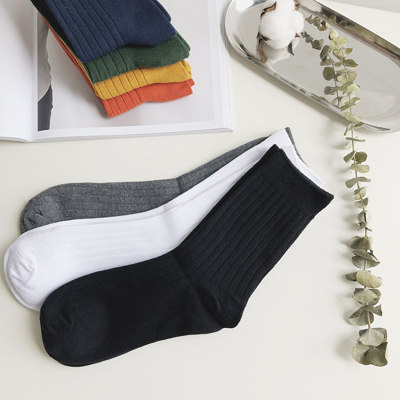 Autumn and winter high socks men's solid color cotton socks simple all-match stockings men's youth white socks in the tube socks trend Japanese