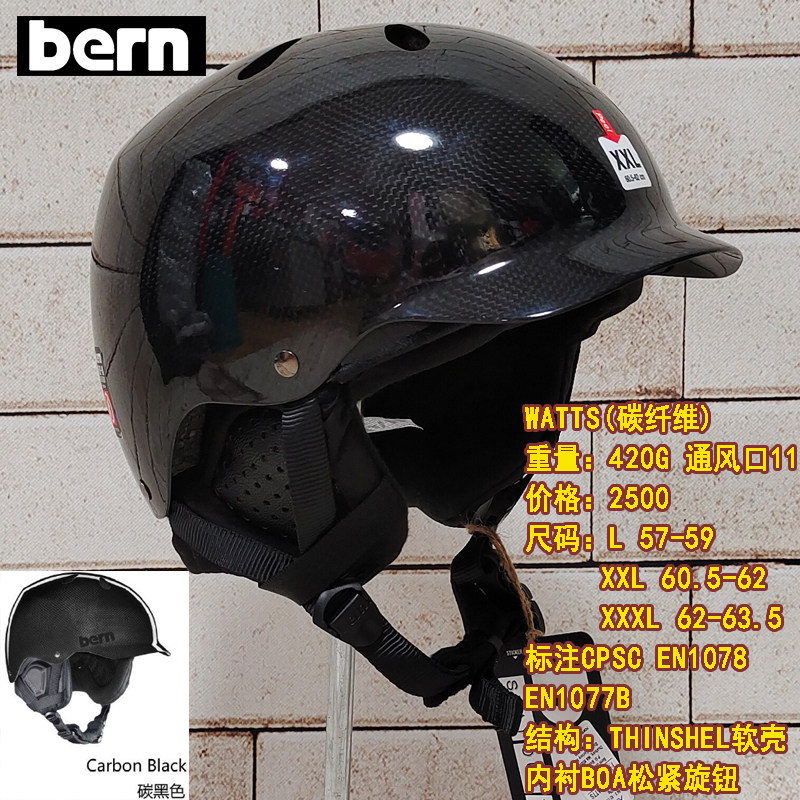 BERN2122 Ski single double board safety helmet Carbon fiber mips adult children both male and female Asian models of care