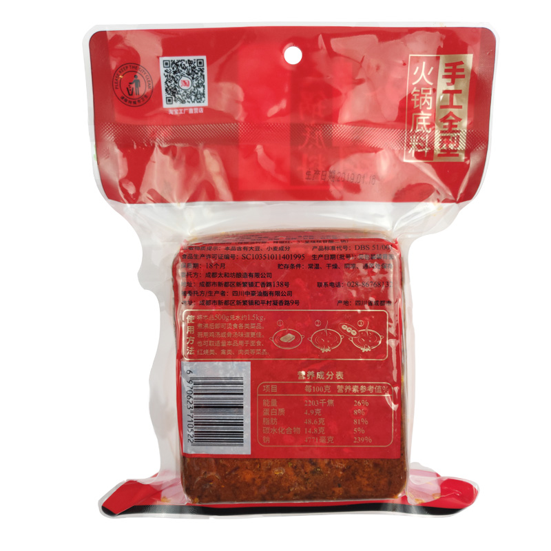 Sichuan Tenute Shu Fragrant Ox Oil Hot Pot Soup Base Special Hot 500g Sichuan Spicy Hot and Hot Hot Pot string Strings Bottom Stock