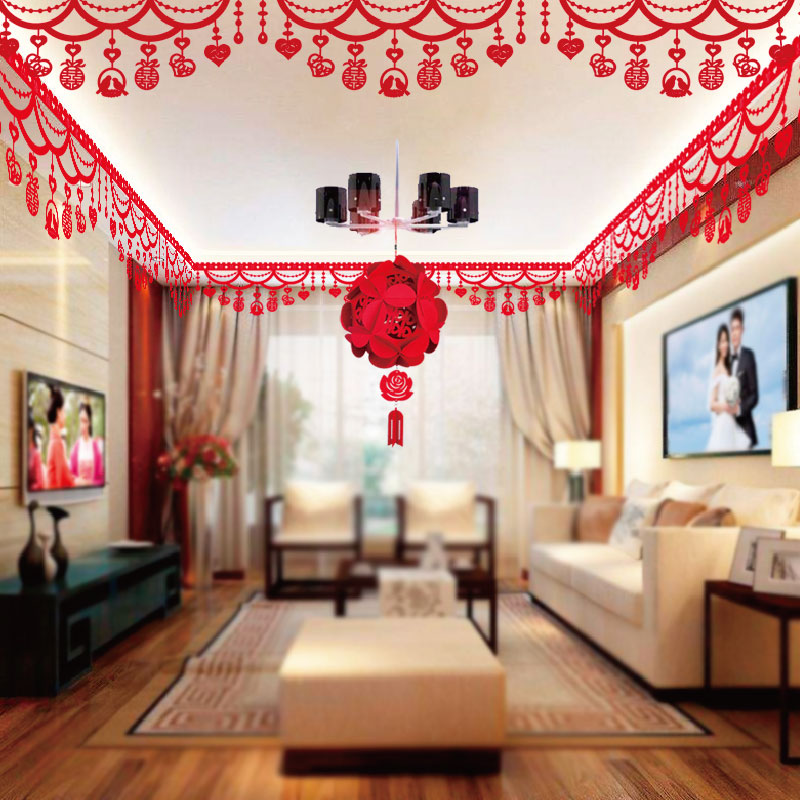 Wedding room layout decoration pull flowers living room ceiling hanging curtain happy word door curtain wedding creative supplies festive door curtain happy word