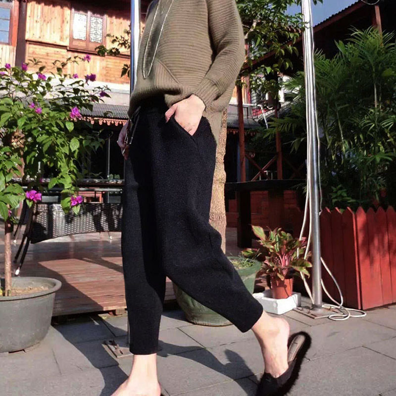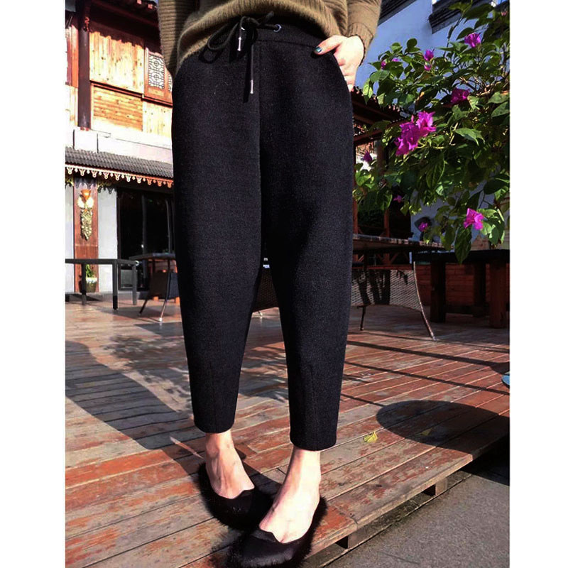 Thickened wool radish pants women's spring and autumn and winter 2021 new nine-point Korean edition loose casual high waist small feet Harlon pants