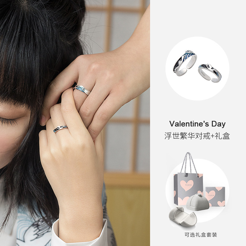 Flower buds original floating bustle bustle to the ring pure silver retro Valentine's Day gift to a female boyfriend couple rings pair