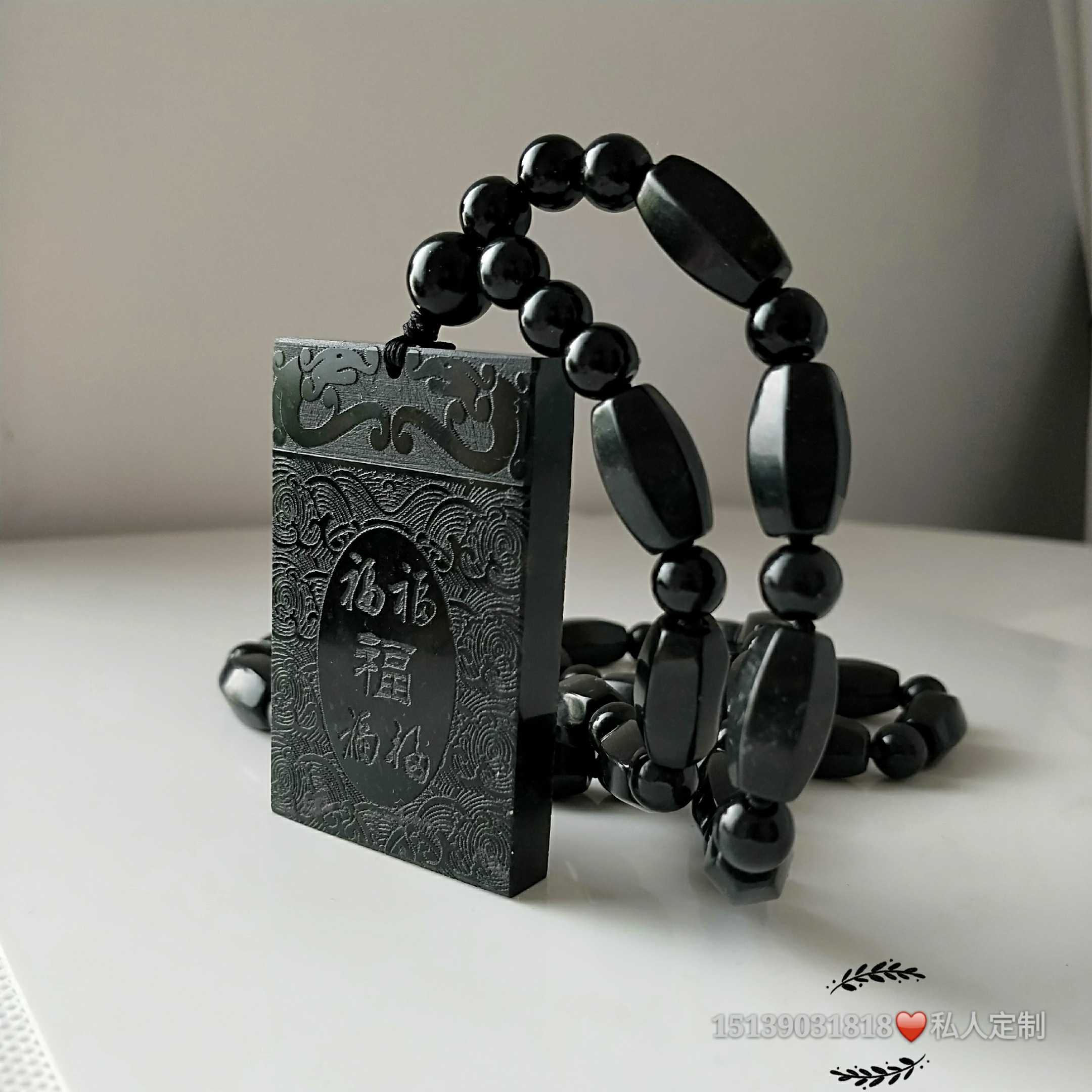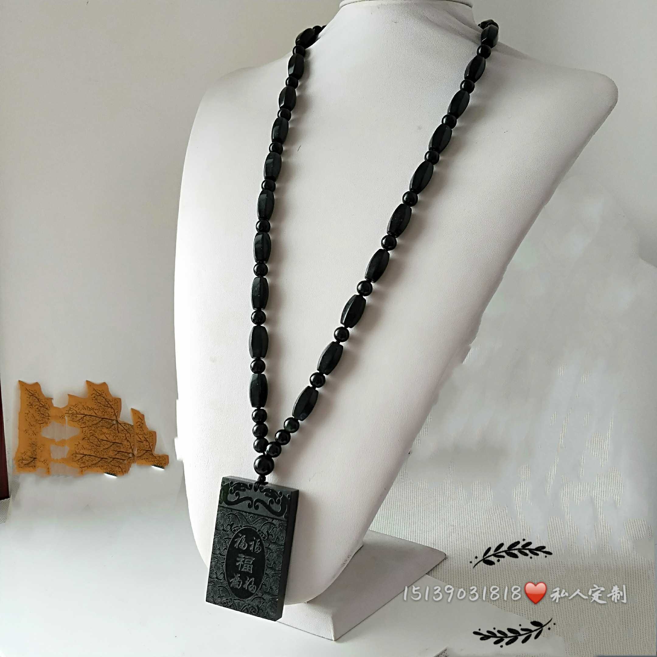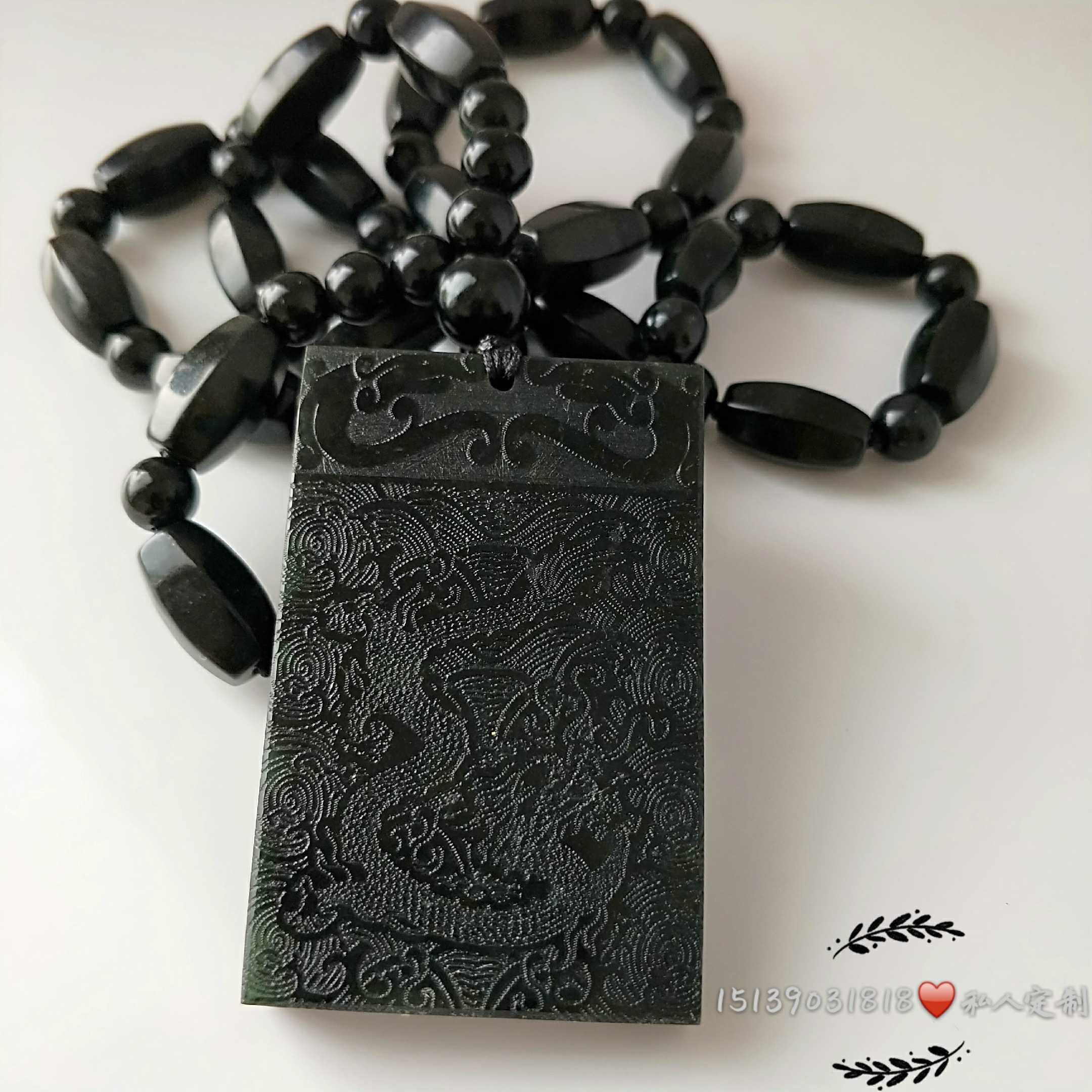 Xinjiang live magnetic black jade through emerald green ink jade pendant safe no incident card pendant blue field black jasper peace card