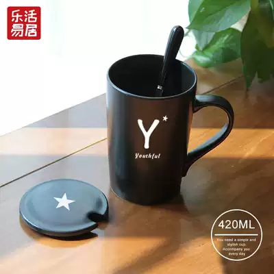 Creative personality trend ceramic cup men and women mug with lid spoon simple couple household Cup custom water Cup