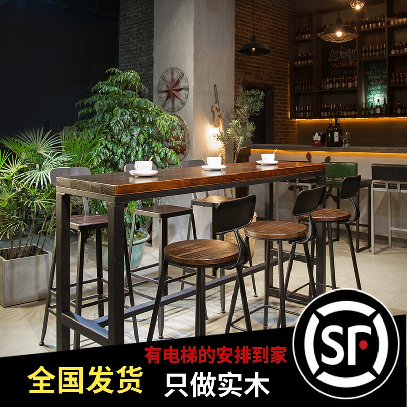 Bar table and chair combination modern simple casual high foot wood made old café milk tea shop long tall and narrow table window