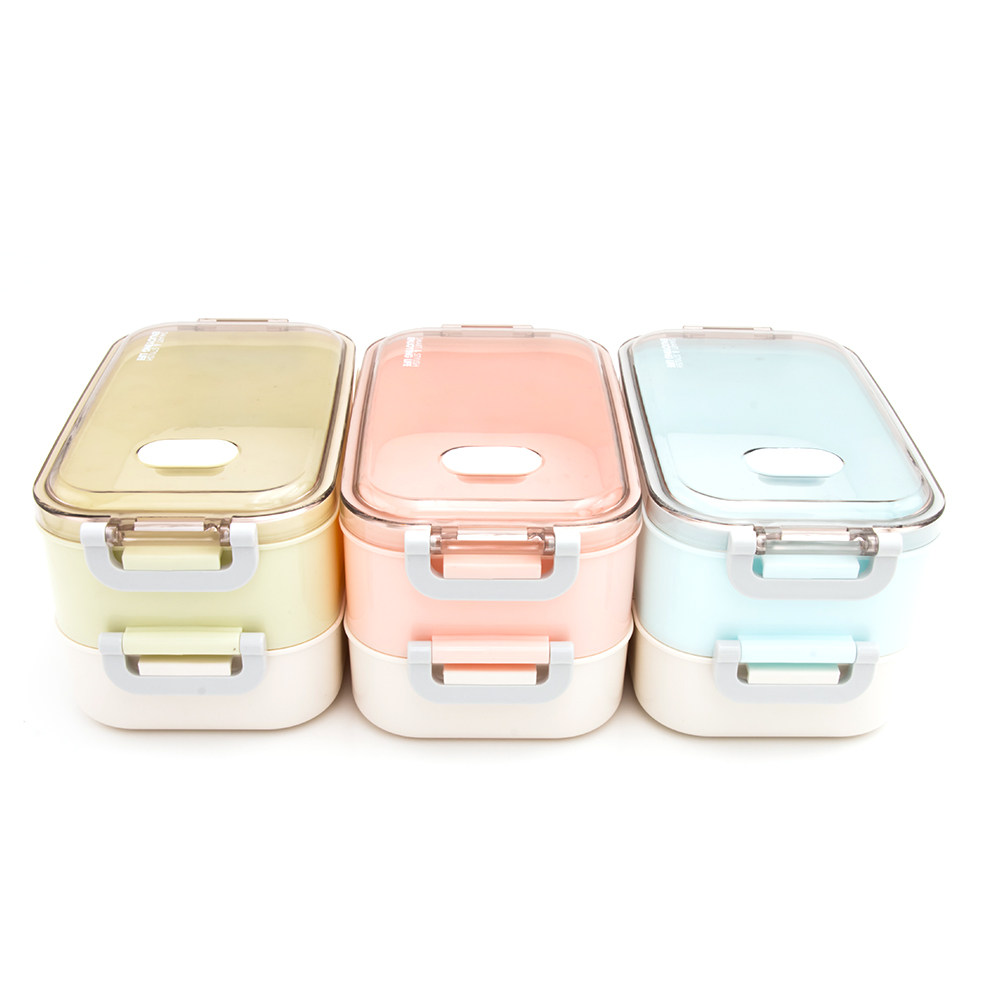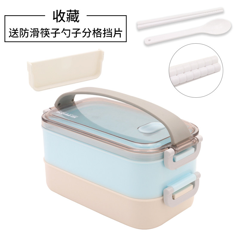 Simple double-layer lunch box Microwave oven plastic Japanese lunch box separated fitness male and female students office workers lunch box
