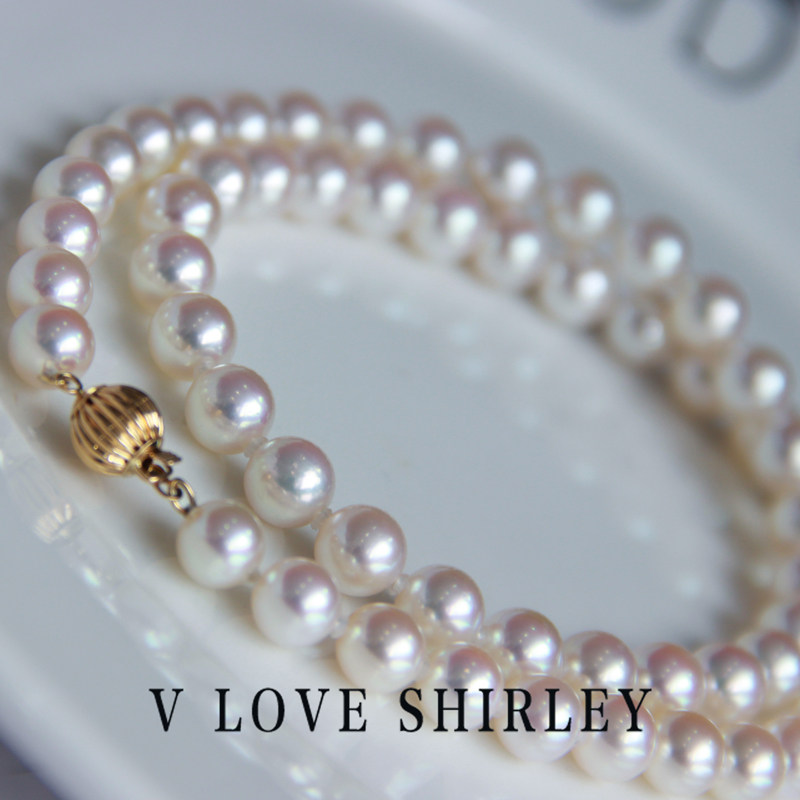 Japan akoya sea water pearl necklace k gold sky women string beads natural pearl lock bone chain necklace with gift certificate