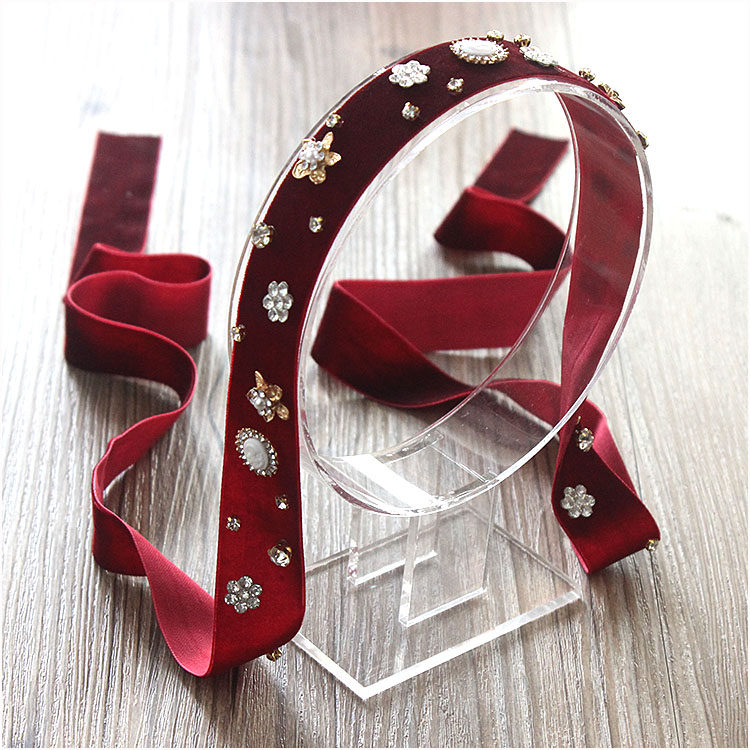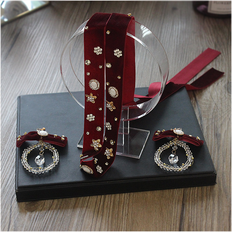 Bride headdress Korean red toast clothes hair cloth with crystal butterfly-tied earring dress accessories