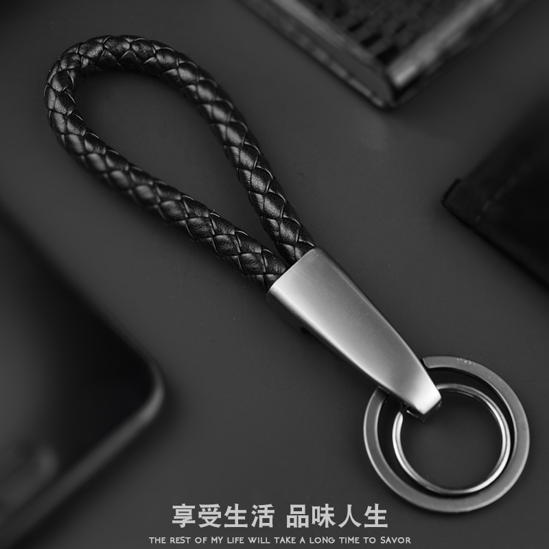 S05 hand woven car keychain men and women lovers double ring key pendant chain ring creative