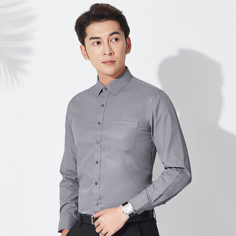 Fall Long Sleeve Shirt Male Grey Business Positive Dress Career Twill Shirt Fall to work suit The undershirt