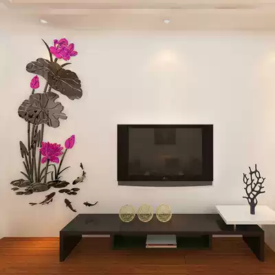 Lotus acrylic wall stickers 3d three-dimensional living room TV background wall stickers Porch wall decoration stickers Chinese style