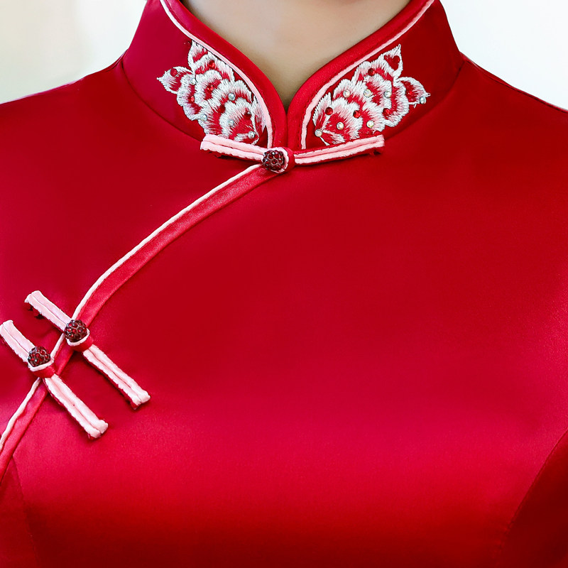 Burgundy cheongsam long noble modified mother dress wedding banquet wedding mother-in-law wedding mother-in-law Chinese dress autumn and winter