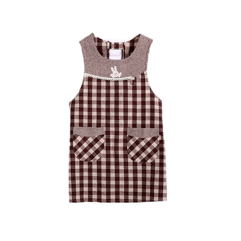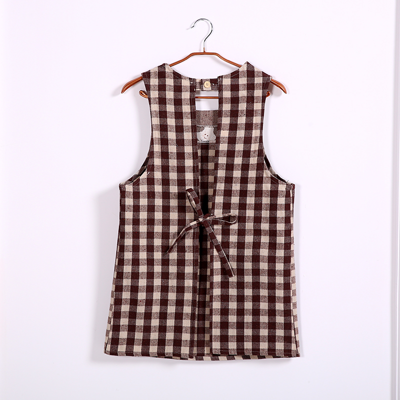 Day Style Thickened Cotton Hemp Cloth Art Plaid Apron At-home Kitchen Clean Cute Korean Version Hood Summer Coat Milk Tea Shop Exclusive