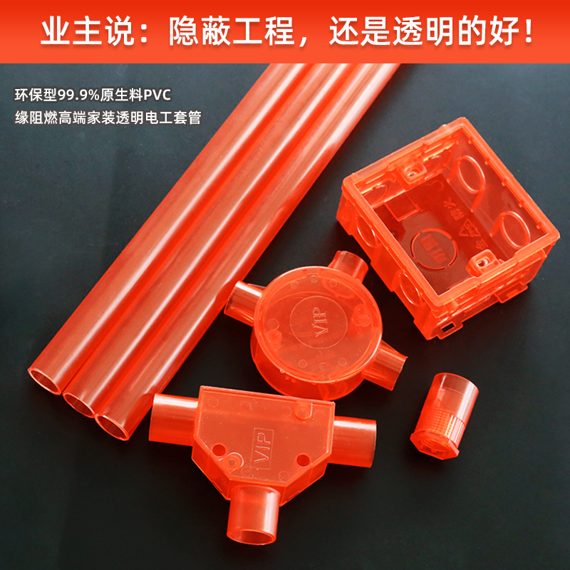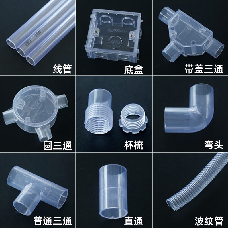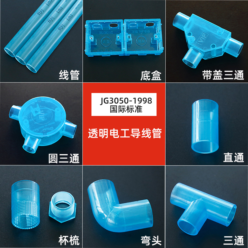 Transparent red and blue line pipe 4 points 20 explosion-proof flame retardant threading pipe pvc electrical pipe routing pipe Sleeve pipe elbow cup comb
