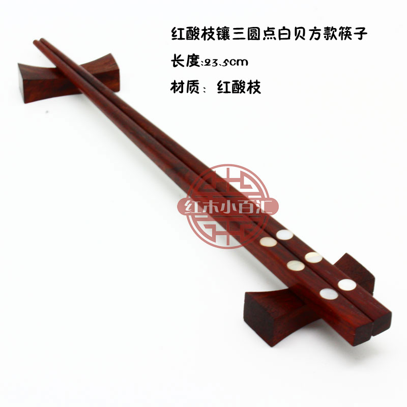 Mahogany chopsticks Red acid branch three-point white circle shell chopsticks