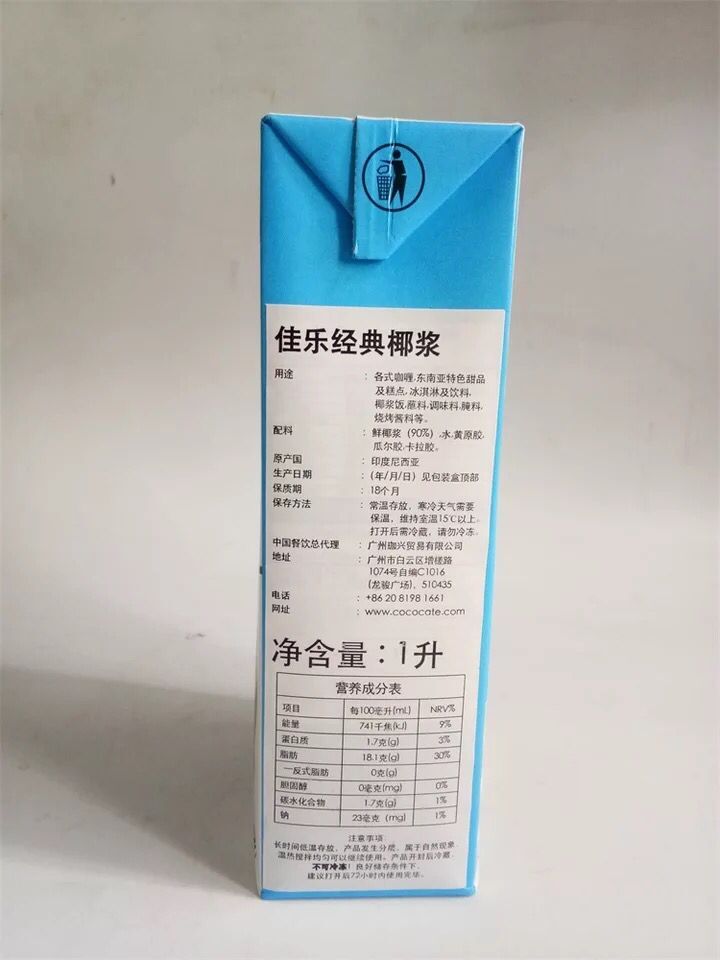 Indonesia imported Jiale classic Coconut Milk 1L * 12 boxes full box more affordable large boxed Kara coconut milk tea raw materials