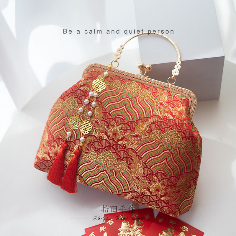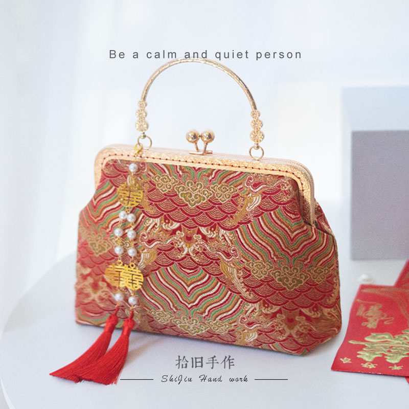2022 women's bag retro style wedding bridal bag handbag country windy brocade with dinner qipao bag mom bag