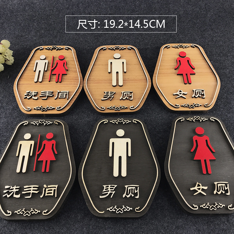 Bathroom Logo Signs Mall Hotel Men And Women Toilets Signage Dressing Room Signs Door Stickup Signs Signs Cards Creative Personality Solid Wooden Door Cards Comeback Solid Warm Cue Cards WC Stickup