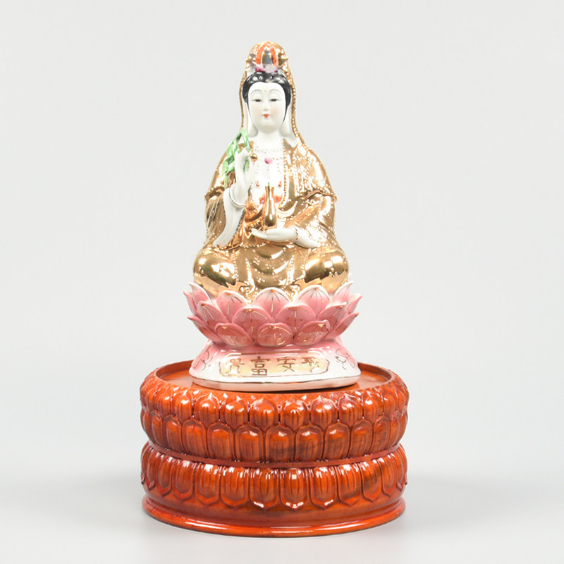 Solid wood engraved Buddha statue round thickened base swing piece handicraft chaise Guanyin Lotus Lotus Nursery can be dug for custom