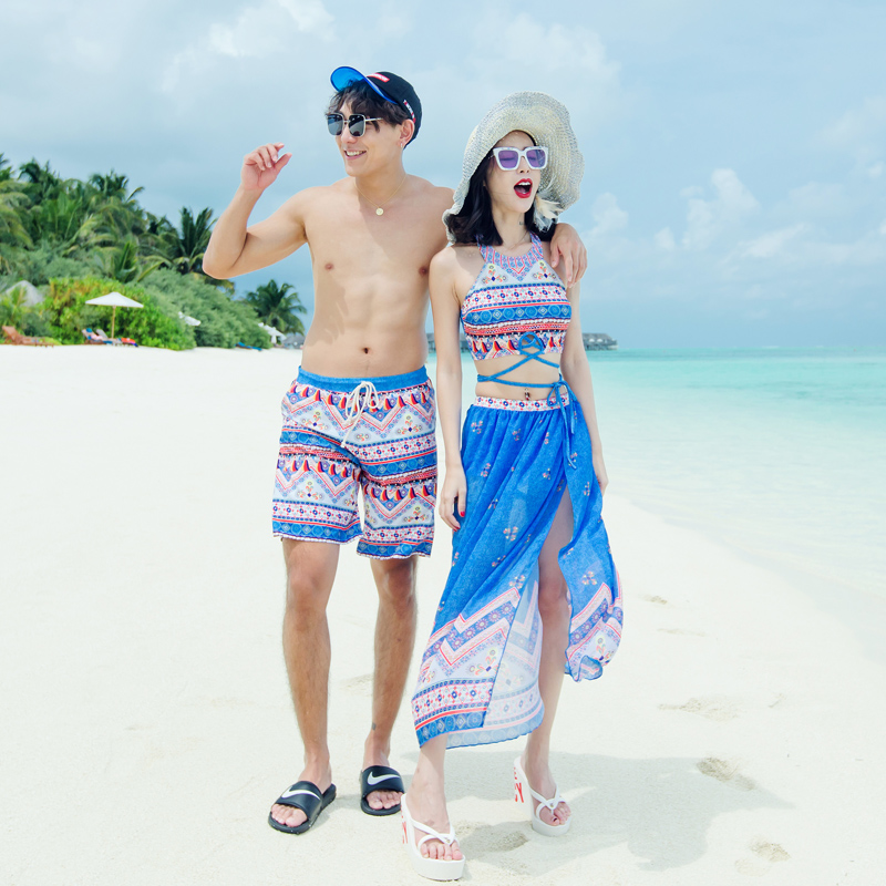 Sexy couple style swimsuit women 2019 new suit three-piece beach hot spring cover the belly show thin size chest gathered