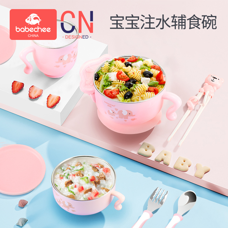 Stainless Steel Children Cutlery Sets Baby Bowl Spoon Vice Food Bowl Baby Eat Suction Cup Bowl Anti-Fall Water Injection Insulation Bowl