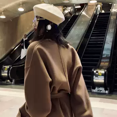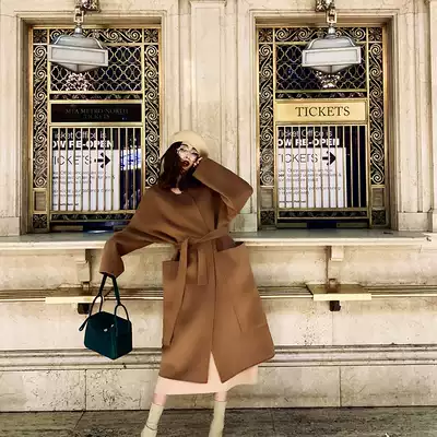 ALUONLINESHOP imported Australian wool 850g caramel Maroon all wool silhouette texture coat coat coat