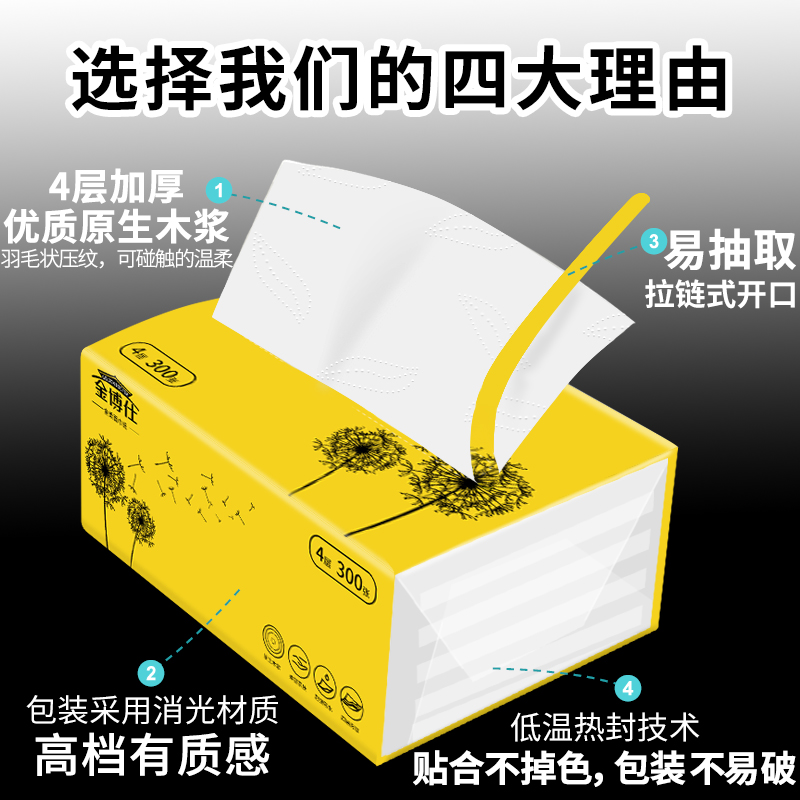Paper towel napkin removable toilet paper Jinboshi household tissue affordable household toilet paper 60 packs of removable toilet paper whole box